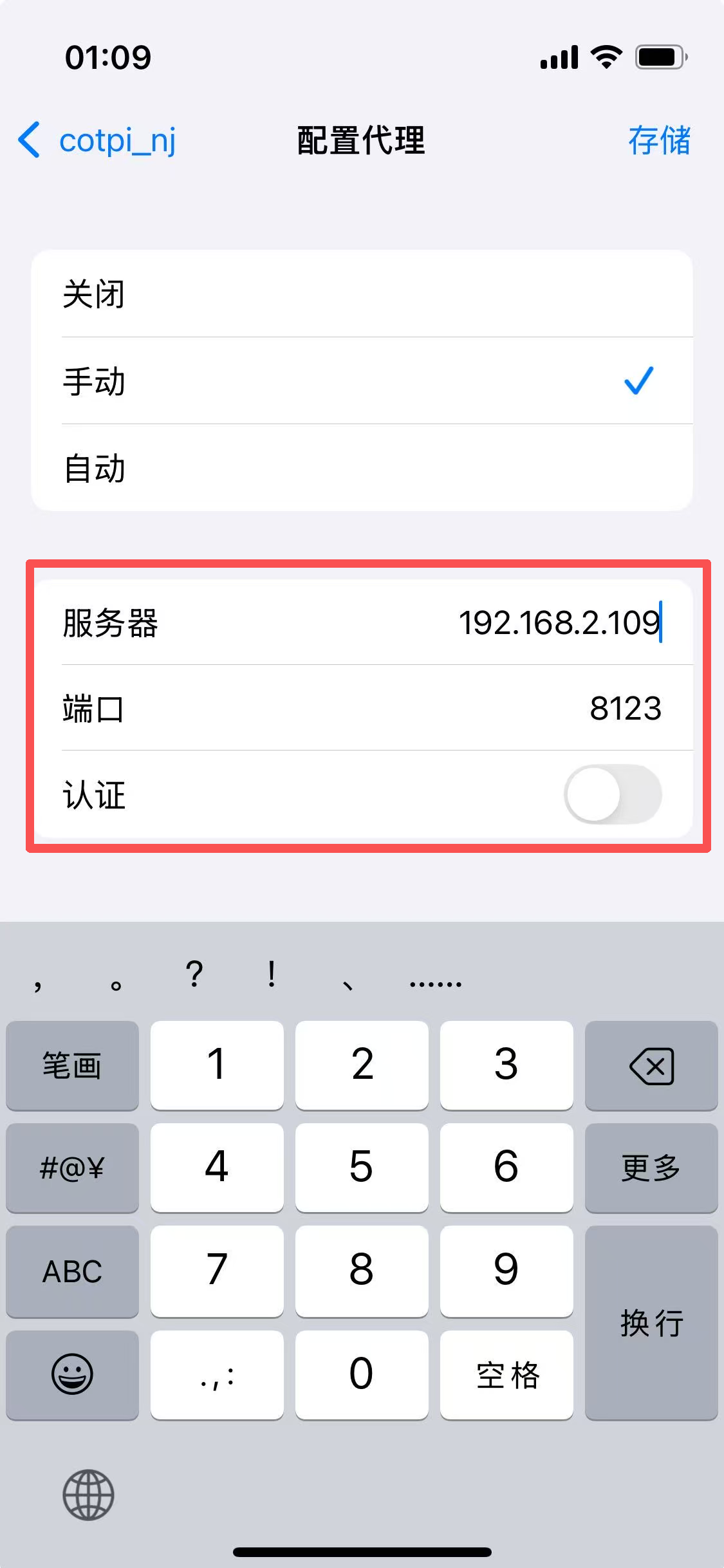 用户端IOS (苹果)本页总览IOS (苹果) 用户端使用http代理协议连接网络优化器; 代理服务器地址:设备的IP 获取IP地址 代理服务器端口:8123 如果开启了用户密码认证,代理服务器的用户名和密码在设备配置中管理。 设备配置 -> 用户管理 使用IOS系统的代理服务器 需要IOS设备(手机)与网络优化器在相同的局域网内; 点击 设置 -> 无线局域网 -> 当前连接的WLAN -> 划到最底部 -> HTTP代理 -> 手动 即使开启了用户密码认证,该界面的认证可以不启用,打开IOS的浏览器会让您输入用户名和密码的。